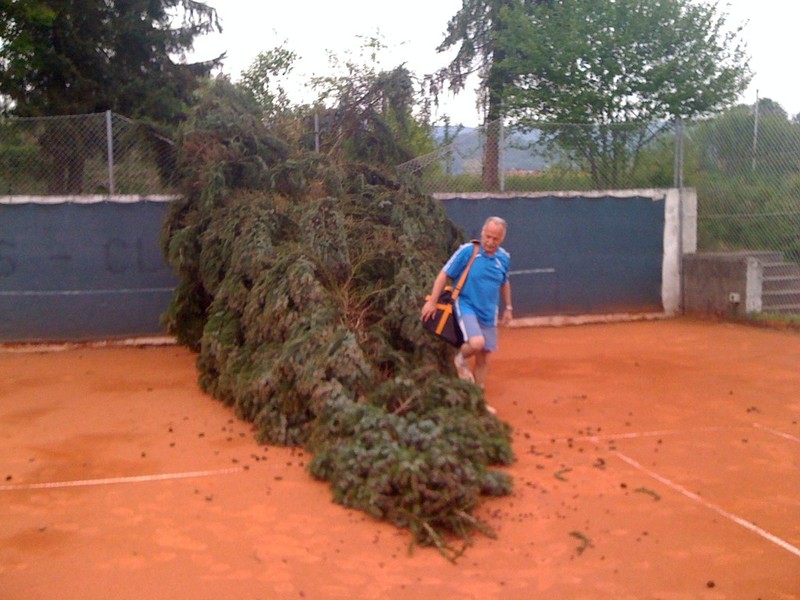 Leider ist dieser Baum umgeknickt und in unsere Tennisanlage gefallen. Bis zum Schleiferlturnier am 01. Mai ist aber bestimmt alles beseitigt.